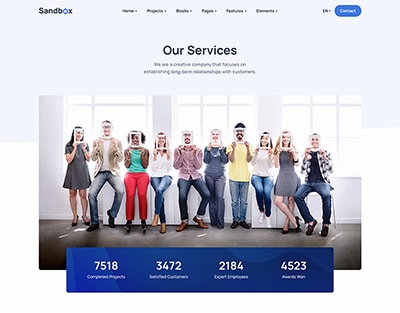 Sandbox includes amazing features and elements to create rich and attractive pages.